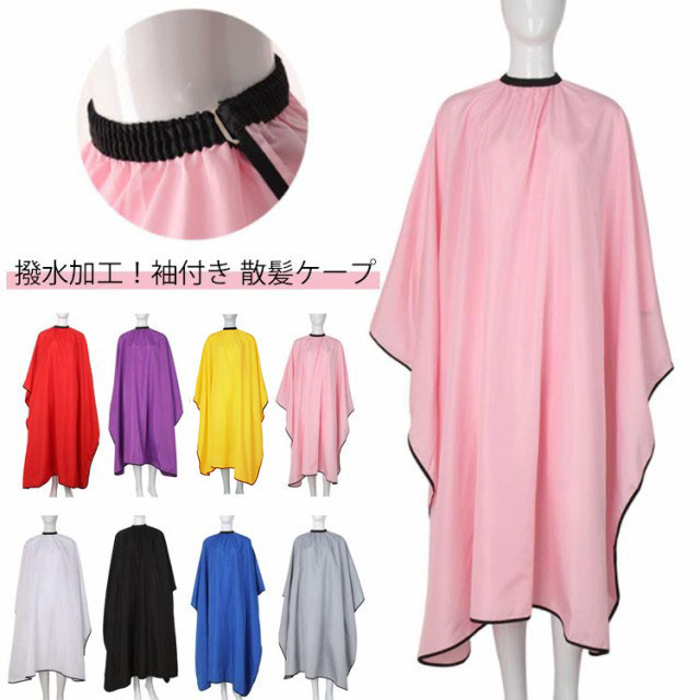 ■理容室 ケープ 袖付き 美容院 防水加工 散髪マント 無地 ヘアエプロン カットクロス 静電気防止 撥水 ヘアカット 髪染めエプロン 大人