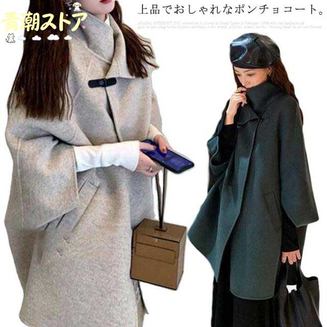 ■コート ポンチョ レディース マント ケープ ダッフルコート 大きいサイズ 無地 体型カバー 通勤 結婚式 韓国ファッション