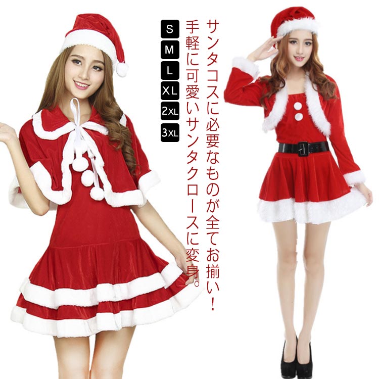 ■サンタ コスプレ サンタコス コスチューム 衣装 セット クリスマス レディース ワンピース サンタ帽子 ボレロ ケープ フレア 可愛い パー