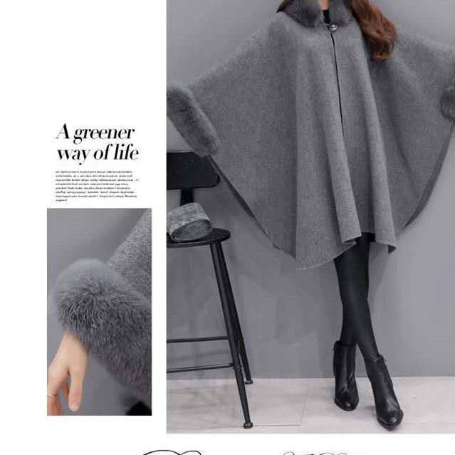 ■フォックスファー付 ポンチョ コート ケープコート コート レディース マント 秋冬 ケープ マント アウター ロング 冬 フェイクファー 体