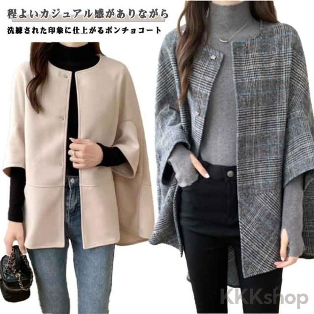 ■コート ポンチョ レディース マント ケープ ダッフルコート 大きいサイズ 無地 体型カバー 通勤 結婚式 韓国ファッション