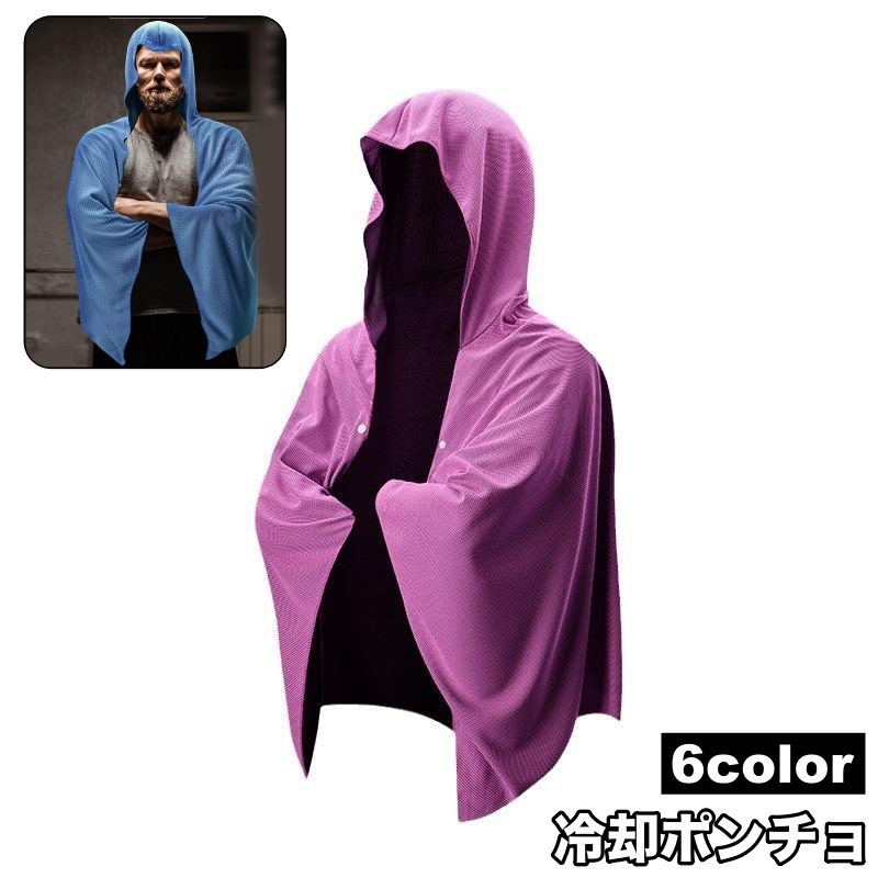 ■冷却ポンチョ 冷感ポンチョ フード付きタオル 冷却 冷感 ケープ タオル スポーツタオル ひんやり クール 涼しい 冷える ボタ