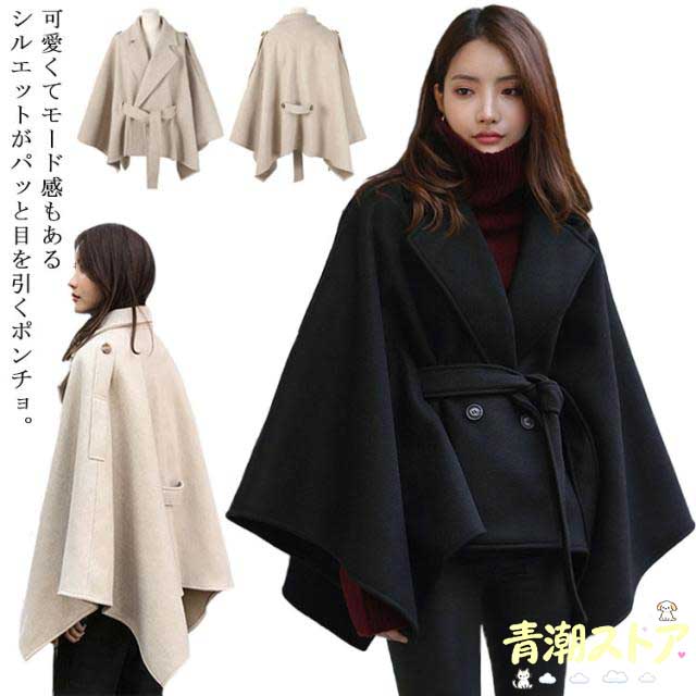 ショートコート ケープ アウター オフィス トレンチコート 羽織 送料無料 厚手 秋冬 コート マント チェスター ジャケット ポンチョ ポンチョコート 無地 ケープコート 長袖 あったか カジュアル レディース 黒 きれいめ 通勤 チェスターコート