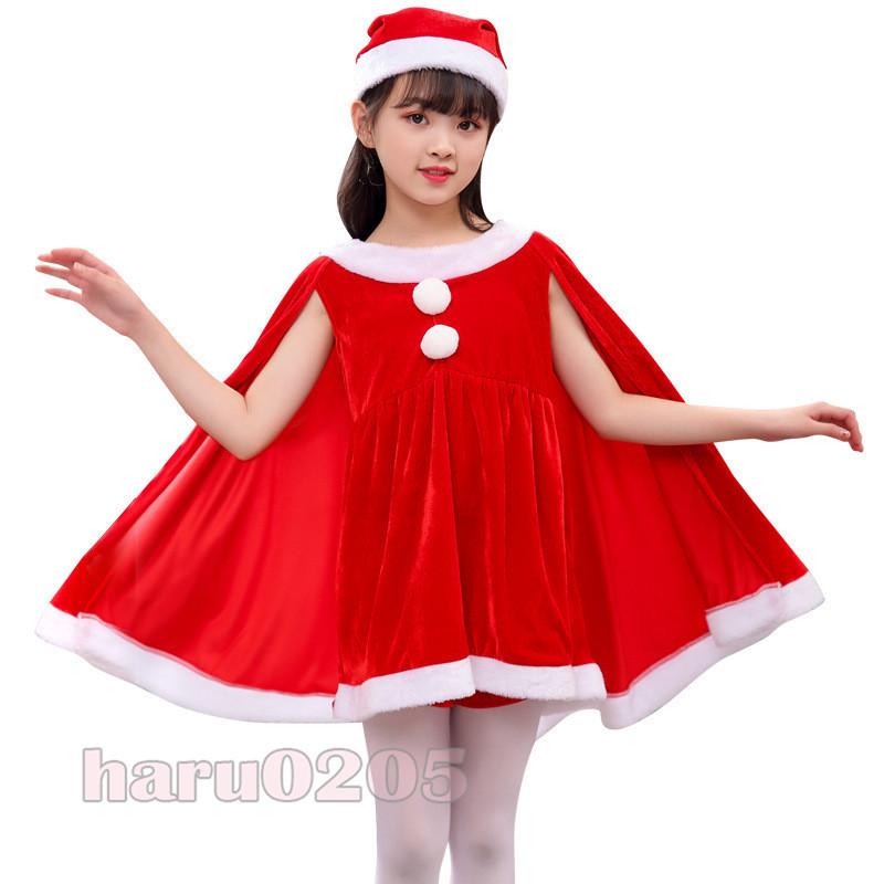 クリスマス サンタ衣装 女の子 子供用 コスチューム コスプレ サンタコス マント ワンピース 帽子 ケープ 仮装 赤 グリーン ポンチョ イベント テレビ 演出服