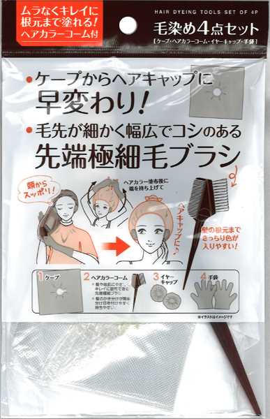 ■毛染め4点セット ケープ/コーム/イヤーキャップ/手袋 (100円ショップ 100円均一 100均一 100均)
