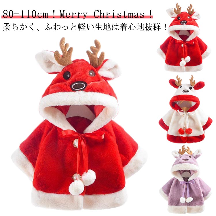 ■鹿柄 ポンチョ キッズ 仮装 衣装 ケープ サンタ ロンパース ベビー 服 コスチューム サンタ 子供 新生児 ベビーマント クリスマス サンタ