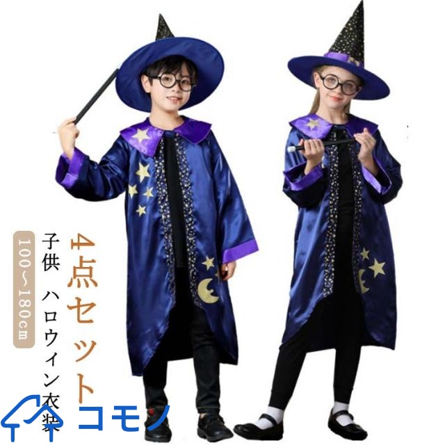 ■魔女 子供 プレゼント コスチューム コスプレ衣装 マント 可愛い 魔法使い 小悪魔 ケープ ハロウィン衣装 シンプル キッズ 男の子 女の子