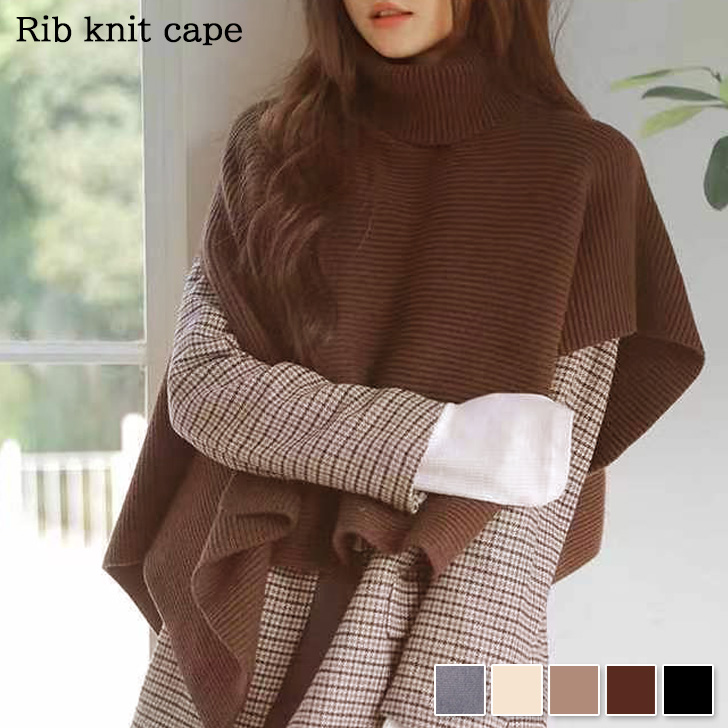 ■新作 タートルネック 変形 リブニット ケープ レディース ニットケープ ニットポンチョ レイヤード 重ね着 厚手 暖かい あったか 肩掛け