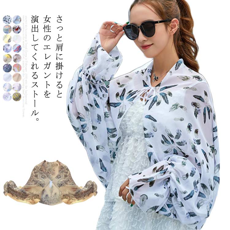 ■ストール ケープ 肩掛け アームカバー プリント ショール シフォン 長袖 日除け対策 UVカット 紫外線対策 日焼け防止 夏物 お洒落 運転