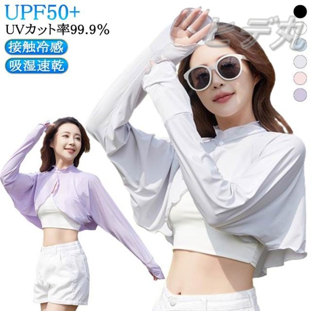 ■立ち襟 冷感 UPF50+?接触冷感?吸湿速乾?UVカット率99.9% パーカー ゆったり 立ち襟 長袖 指穴 可愛い UV 裾フリル ケープ 着る 立ち