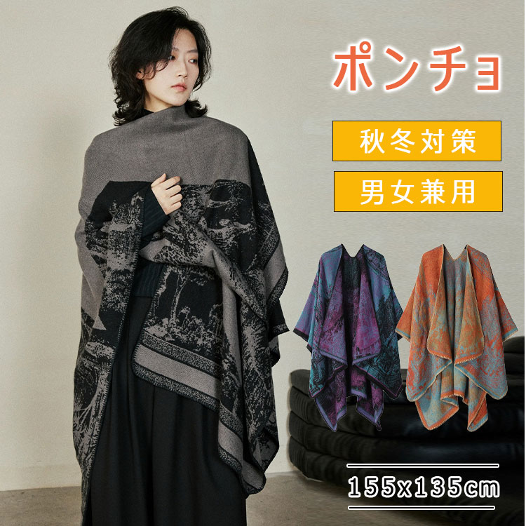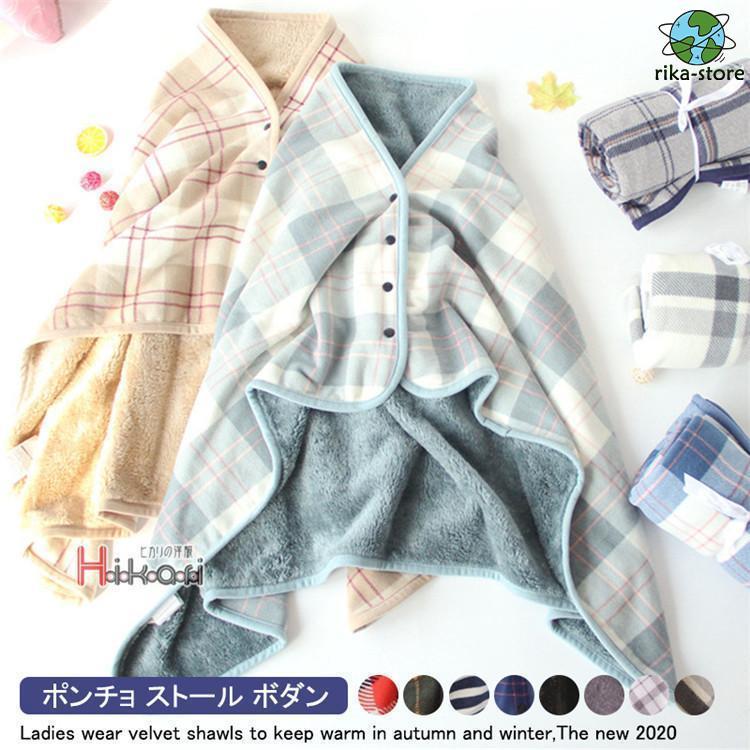 ポンチョ ストール レディース メンズ 大判 ボタン付き コート マント マフラー 秋冬 裏起毛 ケープ アウター