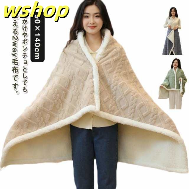 ■【wshop 】着る毛布 ポンチョ ケープ 毛布 厚手 ハーフ ブランケット 大判 90×140cm レディース メンズ 子供 キッズ ひざ掛け 膝掛け 掛