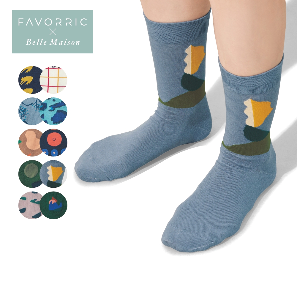―デザイン・スタイリング―・イラストレーター3人の作品がソックスに・楽しいだけでなく、コーデに合わせたときに センスの良さが感じられるデザイン―素材―・履き心地のいい綿混素材で、一年中快適フェイバリック/FAVORRIC「アートと暮らす。」をコンセプトに、国内外で活躍する気鋭のアーティストの作品を、上質な素材と日本の高い製品化の技術によって、インテリア雑貨、テーブルウェア、ファッション雑貨などを展開するブランドです。美しい生活の道具としてアートを気軽に生活に取り込むライフスタイルを提案しています。アーティスト/作品・しまむらひかり さんイラストレーター / テキスタイルデザイナー。1996年生まれ、群馬県出身。染色技法を用いた温かみのあるタッチとあざやかな色面で、生き物や身近な風景、空想の世界などを描く。「とりとくだもの」とりたちが運んできた、色とりどりのたくさんのくだもの。ずらりと並べて、まるで宝石のよう。さあ、どれでもお好きなものをどうぞ。・ワタミユ さんイラストレーター。1997年生まれ、山形県出身。抽象と具象の間で表現をおこない、表情が見えない人物とカラフルな色味を題材にしながら幅広く活動中。「散策」遠くに山が見え、カラフルな遊具に囲まれている公園を散策している人の様子を描きました。「classic」シックでモダンな雰囲気を色や形で表した作品です。・高田 昌耶 さんイラストレーター。大阪府高槻市出身。イラストレーションワーク、展覧会やアートイベントへの出展を中心に活動中。「部屋でくつろぐベンガル猫」個展「ベンガル猫を飼いたい」の出品作品