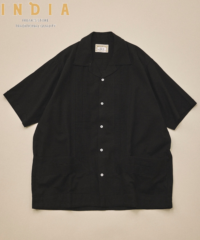 2026 Spring & Summer Item春夏にピッタリの涼し気な半袖シャツが登場インドファブリックを使用したリラックスフィット キューバシャツ南インド地方の柔らく涼しげな綿麻生地を使用。軽量で柔らかく着心地の良いオープンカラーシャツユニセックスで着やすいカラーリングを提案ヴィンテージでも珍しいハンドウォーム付きデザインをサンプリングしており、着やすさと実用性のある1枚にタック(ひだ)はパーツではなく、1枚の身頃を加工しているヴィンテージキューバシャツのような本格仕様ボタンは本貝釦を使用することで高級感を演出Somani fabricsインド・ジャイプールから世界へテキスタイル~製品まで一環して生産しているファクトリー。Made in indiaでしか表現できない、クラフト感・色使い・肌触りが特徴的なフリークスストア別注素材を使用したラインナップです。旧式の織機/編機を使用した素材は温もりのある粗野感が特徴的です。フリークスストア別注2シーズン目となる今回は、デザインだけでなく組織/色/柄全てに拘ったラインナップです。おすすめコーディネート春夏コーデの主役としてお使い頂きたいアイテムです。シンプルなデザインで、ゆったり目のサイズ感なので、かっちりし過ぎることなく、カジュアルなスタイリングを楽しめます。高級感溢れる素材を使用しており、きれいめなスタイルにもオススメです。掲載画像の商品の色味は、屋外や屋内の光の照射や角度により実物と色味が異なる場合がございます。また表示のサイズ感と実物は若干異なる場合もございますので、予めご了承ください。着用、お取り扱いの際は、商品についている品質表示とアテンションタグを必ずご確認下さい。