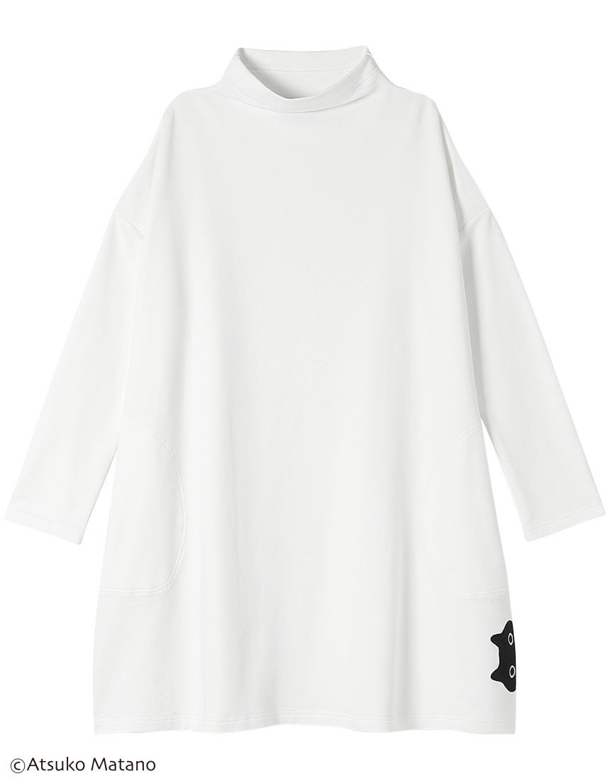 【トップス(ロング袖)】クリエーター"俣野温子"氏がデザインする、甘くなりすぎない大人かわいいテキスタイルとカラーで、くつろぎ時間を楽しく過ごせるパジャマ&ルームウェア・チュニック丈のハイネックトップス・左脇裾からのぞく黒猫のアップリケがデザインポイント【サイズ詳細】M:身幅59.5cm 着丈93.5cm 身丈85.5cm 肩幅62.5cm 袖丈43.5cm L:身幅63.5cm 着丈93.5cm 身丈85.5cm 肩幅64.0cm 袖丈43.5cm LL:身幅67.5cm 着丈94.5cm 身丈86.0cm 肩幅65.5cm 袖丈44.0cm※出来上がり寸法を表示しております※サイズ詳細の寸法には多少の差異がございます出来上がり寸法の測り方についてはこちら