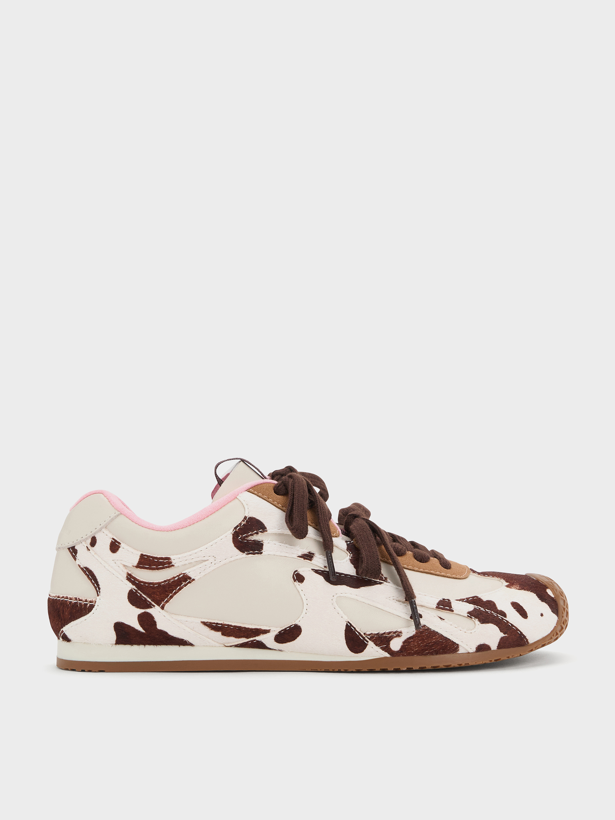 コントラストの効いたツートーンパネルがコーディネートにアクセントを与えるダブルレーススニーカーは、タン部分にCHARLES & KEITHのロゴを施し、ここでしか手に入らない特別感を演出。なめらかで手触りの良いカーフ素材を使用し、上品さと存在感を兼ね備えたシューズに仕上げました。靴紐の結び方をアレンジしてスタイルに合わせた楽しみ方ができるダブルレースは、アッパー部分をほどよく固定します。スエードは、少し丁寧なお手入れが必要です。使用後は、柔らかいブラシで表面を一定方向に軽くブラッシングし、ほこりや汚れを落としてください。しつこい汚れには、薄めた中性洗剤を含ませた布でやさしく拭き取ると効果的です。
