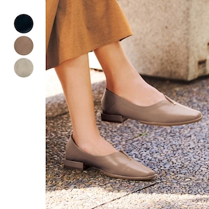 ―デザイン・スタイリング―・パンプス見えする上品なローファー・甲は深めで安心感のある履き心地・さりげなく入れたスリットで抜け感を演出・かかとのデザインも旬な印象―素材―・お手入れしやすい合成皮革