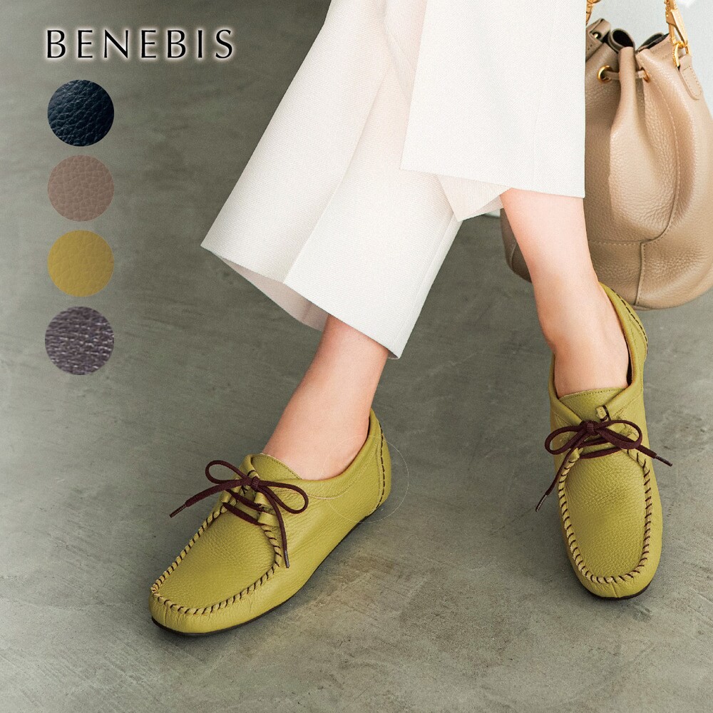 ―デザイン・スタイリング―・ロングセラーの本革脚長モカシンに、レースアップの新作デザインが登場・"モカ縫い"と呼ばれる手縫いの技で、やわらかな履き心地に・靴ひもはゴムなので、ほどかずに脱ぎ履きができてラク・甲が深めのデザインだから、かかとが脱げやすい方にも―素材―・たおやかな風合いのイタリアンレザー・履くほどに足に馴染み、"育てる"ような感覚もBENEBIS(ベネビス)30年以上支持されている 「足にやさしい」と「美しい」 を叶える がコンセプトのベルメゾンオリジナルブランド。お客様の生の声を大切にしながら、女性の足に「やっと出会えた」と喜んで頂ける履き心地をお届けしています。