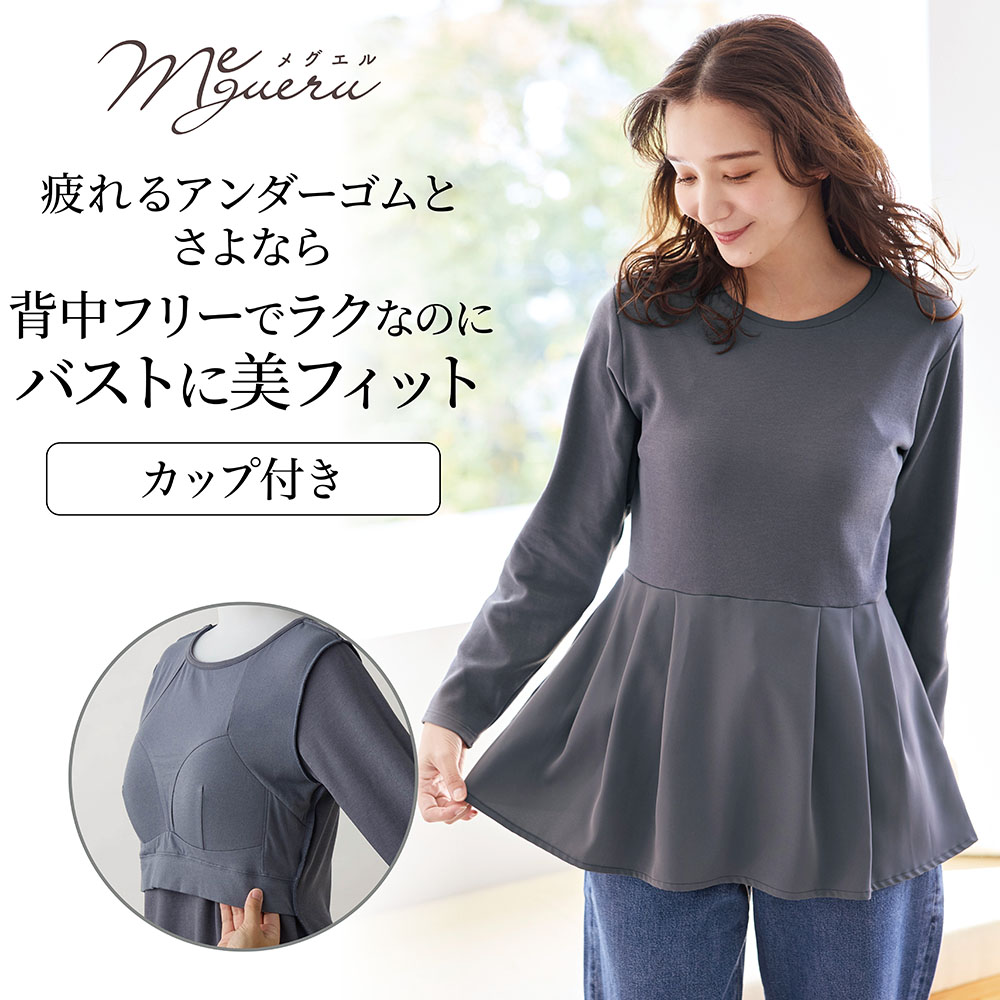 ■【サラリスト/Salalist】サラッと快適・くつろぎカップ付き綿混長袖Tシャツ(背中フリー)