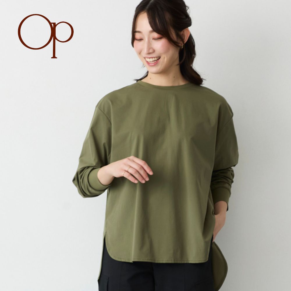 ―デザイン・スタイリング―・パンツにもスカートにも合わせやすい定番シルエットTシャツ・サイドスリット入りでサマ見え・やや長めの袖丈が肩まわりや二の腕をカバー・開きすぎない襟ぐりで気になる首元も安心―素材―・肌に優しい綿混カットソー素材―機能―・着るだけで血行促進※効果が期待でき、めぐりをサポート ※体温の輻射による・身生地はIFMC.(イフミック)加工した特別な生地を採用