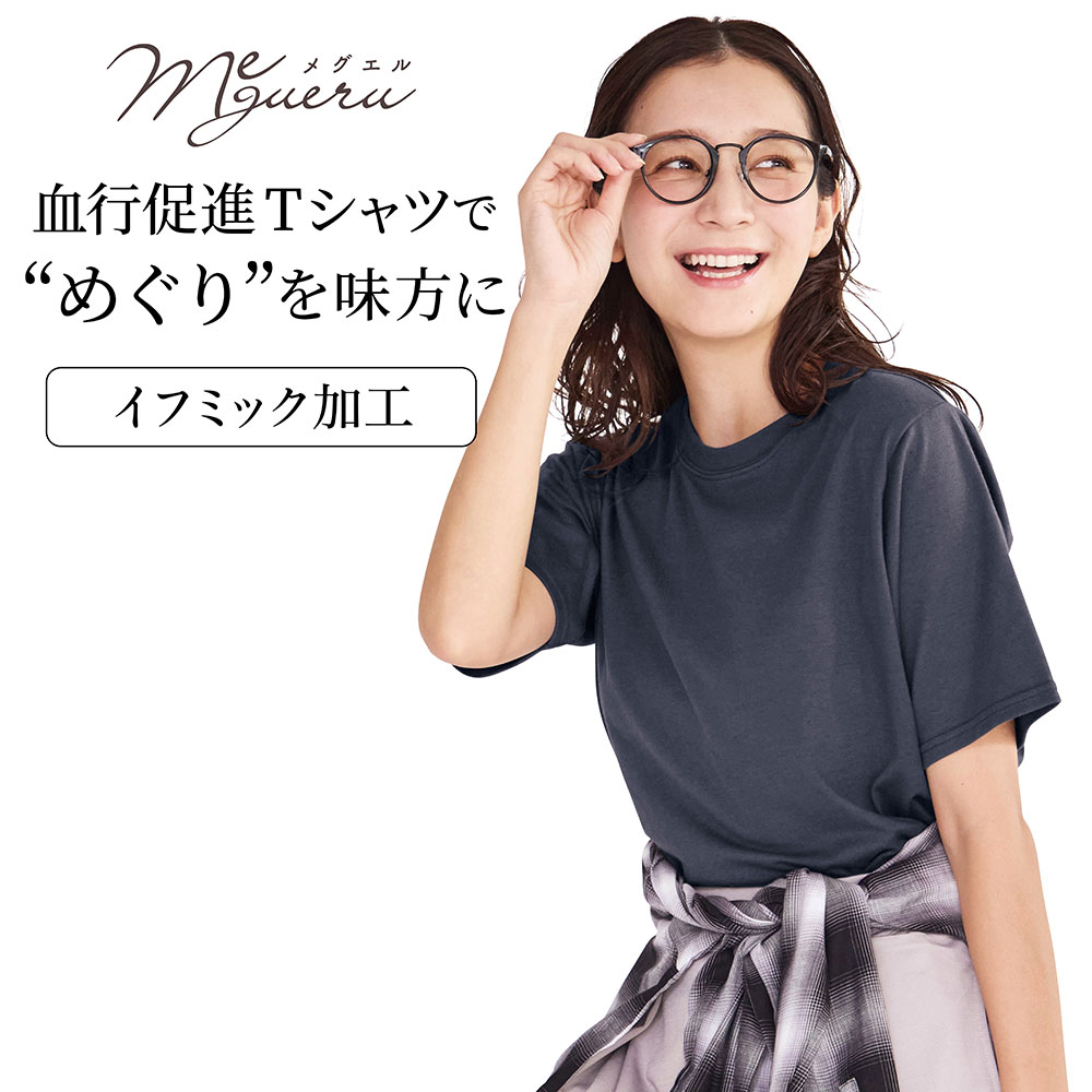 ―デザイン・スタイリング―・パンツにもスカートにも合わせやすい定番シルエットTシャツ・サイドスリット入りでサマ見え・やや長めの袖丈が肩まわりや二の腕をカバー・開きすぎない襟ぐりで気になる首元も安心―素材―・肌に優しい綿混カットソー素材―機能―・着るだけで血行促進※効果が期待でき、めぐりをサポート ※体温の輻射による・身生地はIFMC.(イフミック)加工した特別な生地を採用