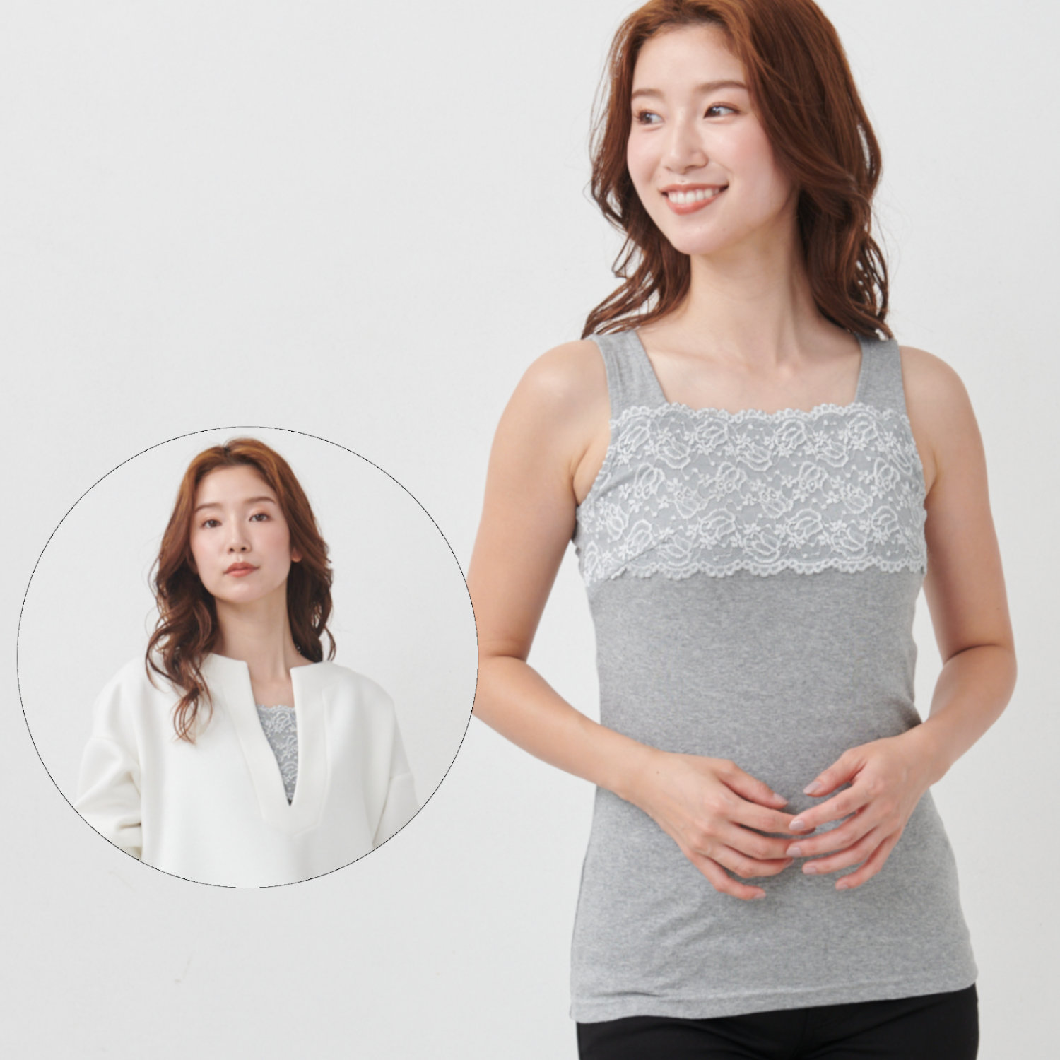 ■【ベルメゾン】年中使える綿素材レースタンクトップ
