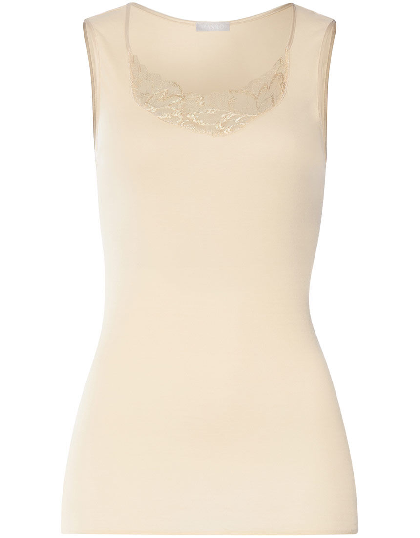 胸もとにあしらわれたレースがエレガントなタンクトップは、シアー感のあるアウターや首もとがあいたブラウスとコーディネイトしても素敵オーストリア製の装飾的な立体レースは、HANROのデザインチームが特別に制作したものサイドや裾まわりには縫い目がなく、やさしい肌あたりで、アウターにラインがひびきにくいコットンにこだわる方のためのエレガントなデイウェアグループ。美しく上品な光沢と繊細なレースに高級感が漂います。おそろいのナイトウェア(NIH250、NIH450)もあります。※掲載サイズは輸入元サイズです。必ず、ページ内に掲載しているサイズ表をご確認ください。