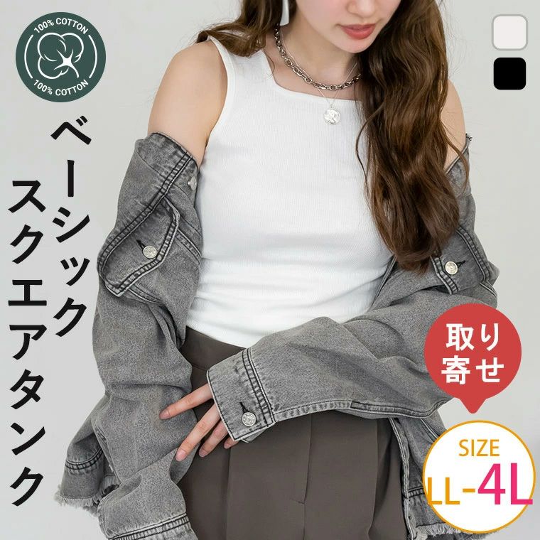 ■2×2リブ スクエアネック タンクトップ 綿100% コットン100% 大きいサイズの通販ならハッピーマリリン(5900円以上購入で送料無料)