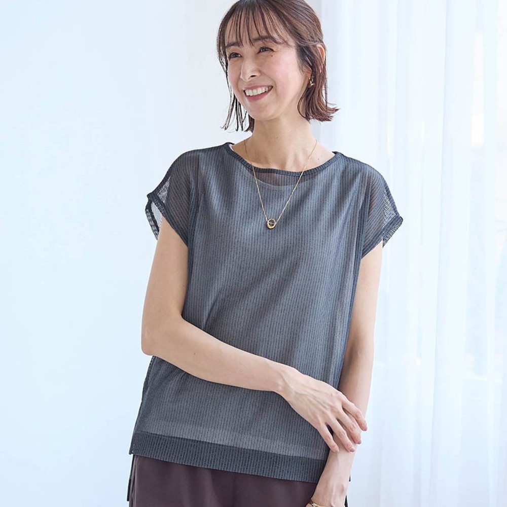 ―デザイン・スタイリング―・涼やかな印象のアンサンブルアイテム・シアーストライプの透け感がすっきりとした印象に・タンクトップとのセットで忙しい朝もコーデに迷わない・トレンドときちんと感を両立したデザイン・リラックス感のある着心地でも上品見え―素材―・軽やかに透けるシアー素材・タンクトップは柔らかなカットソー素材Style Note(スタイルノート)2000年のデビュー以来、長きにわたりご好評を頂いている ベルメゾンのオリジナルブランド。トレンドを適度に取り入れながら、素材・仕立て・シルエットに至るまで、大人の女性にふさわしいクオリティを追求し、お洒落が楽しくなるスタイルをお届けします。