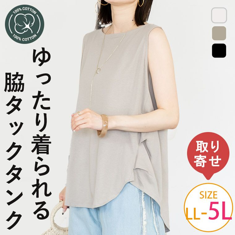 ■脇タック ノースリーブ タンクトップ トップス 綿100% コットン100% 大きいサイズの通販ならハッピーマリリン(5900円以上購入で送料無料)