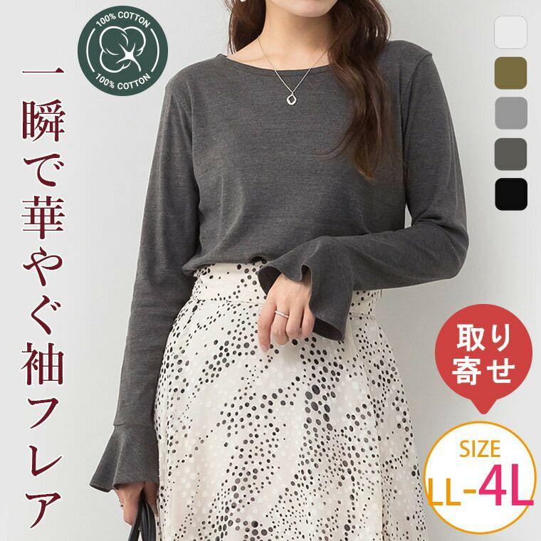 ■綿フライス 袖口フレア 長袖 カットソー 大きいサイズの通販ならハッピーマリリン(5900円以上購入で送料無料)