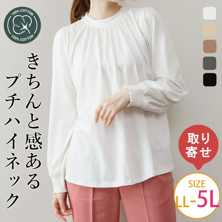 ■プチハイネック ボリュームスリーブ カットソー 綿100% コットン100% 大きいサイズの通販ならハッピーマリリン(5900円以上購入で送料無料)