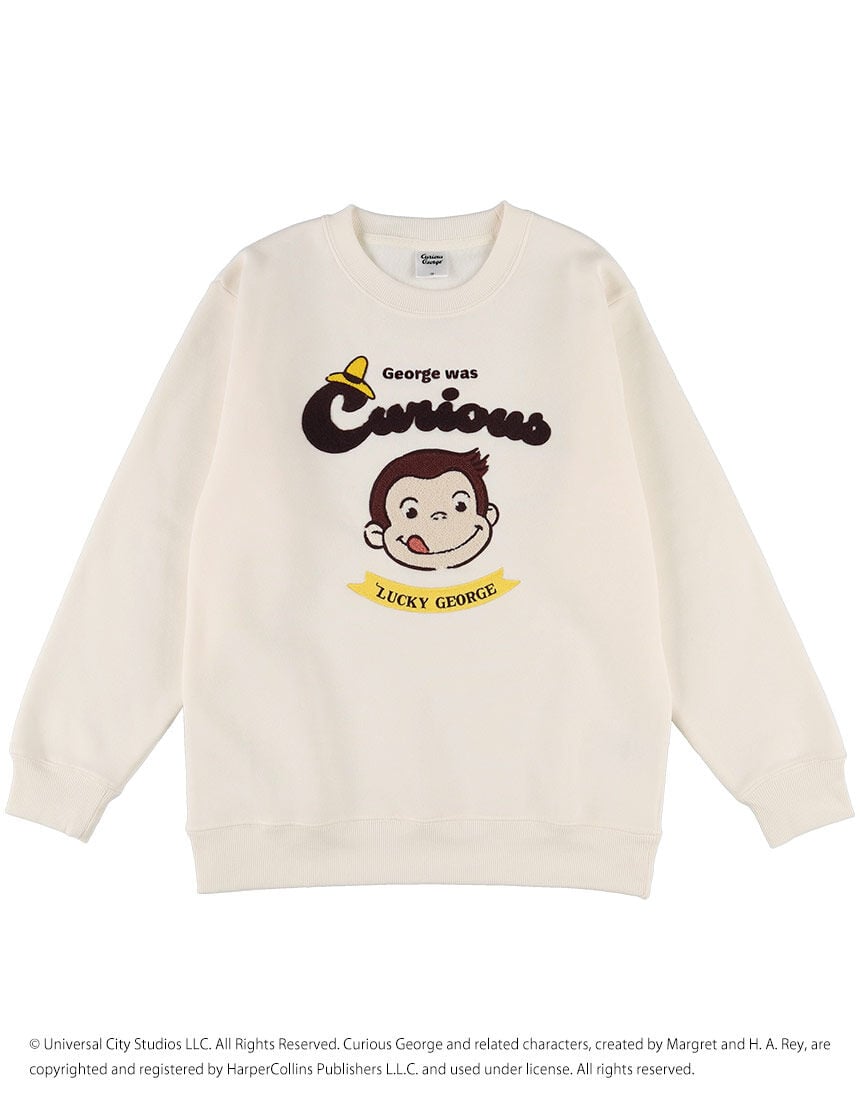 ■【おさるのジョージ】ジョージサガラ刺繍 裏起毛クルーネックトレーナー トレーナー