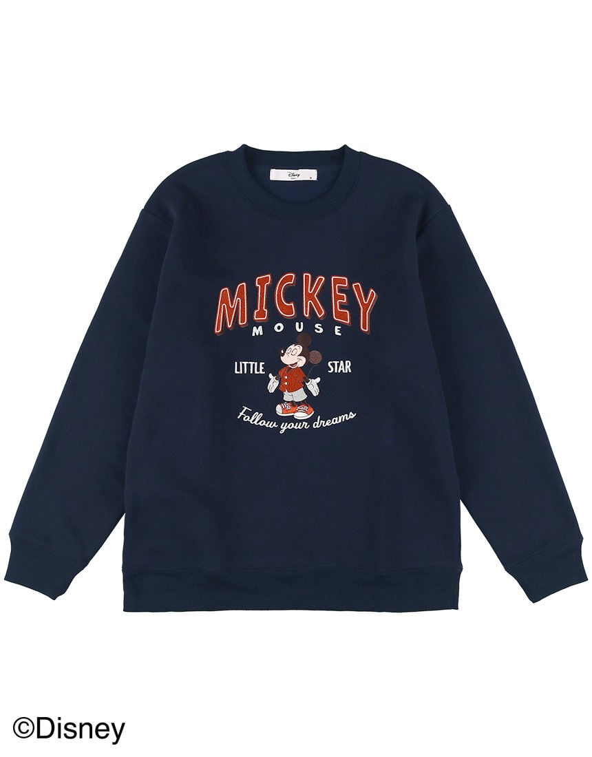 ■【ディズニー】ワンポイント刺繍 裏起毛クルーネックトレーナー トレーナー