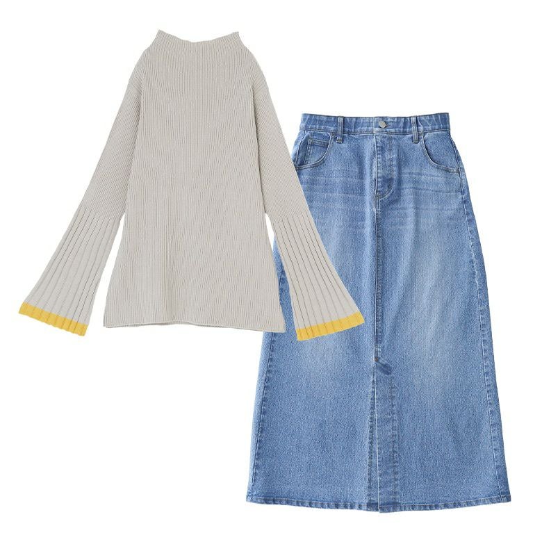 ■フレアスリーブニット×デニムナロースカートコーデ2点SET ニット(S~M) スカート(S~M)