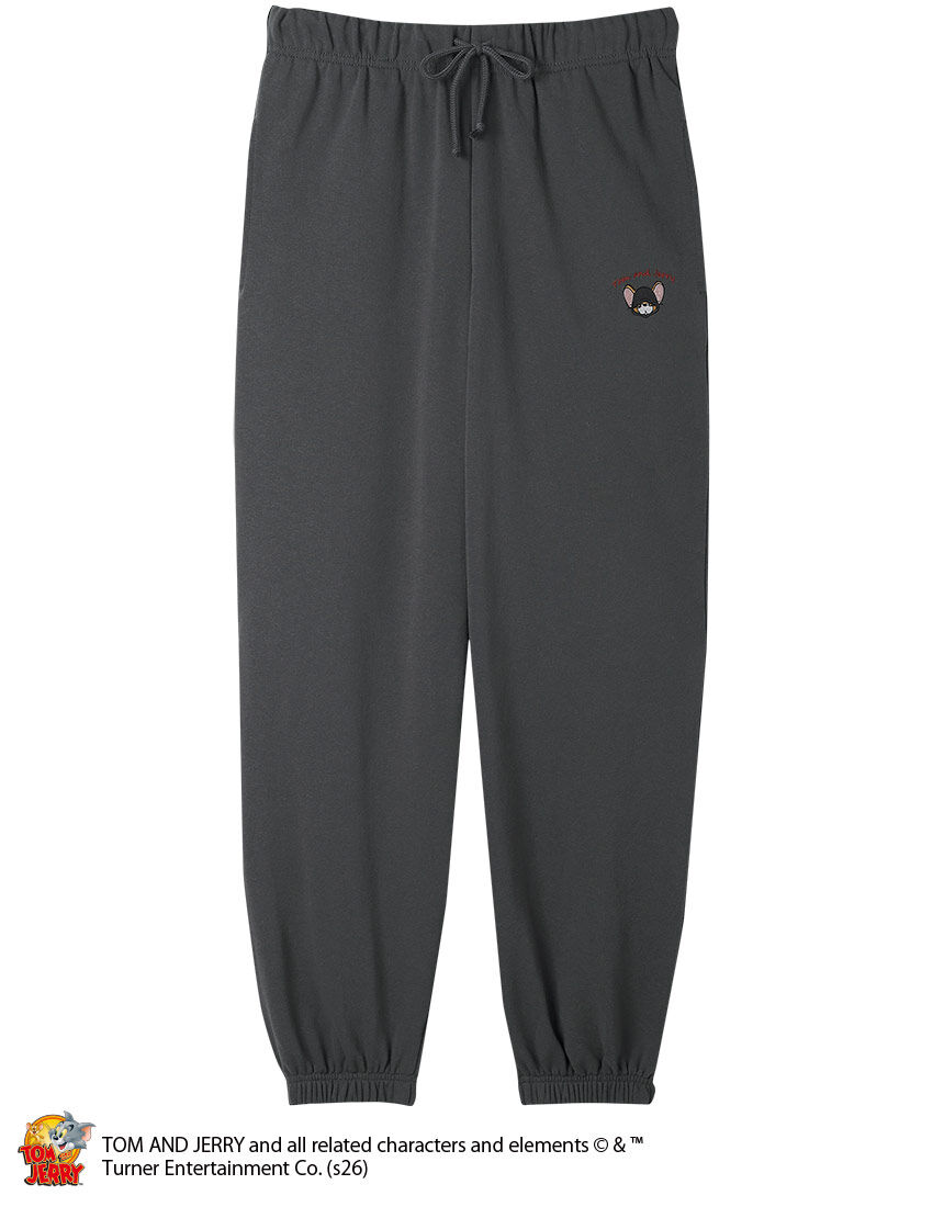 ■【トムとジェリー】ジェリーワンポイント刺繍 裏毛裾ゴムスウェットパンツ ニット