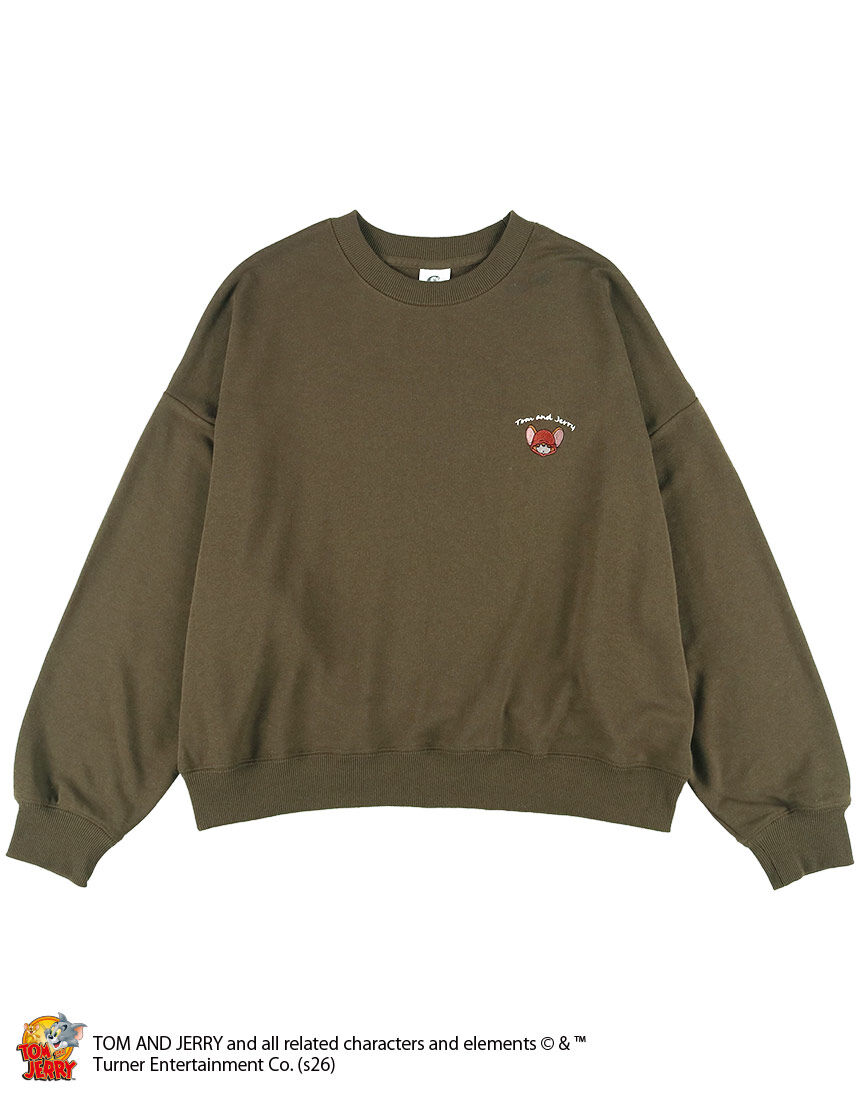 ■【トムとジェリー】ジェリーサガラ刺繍 裏毛クルーネックトレーナー ニット