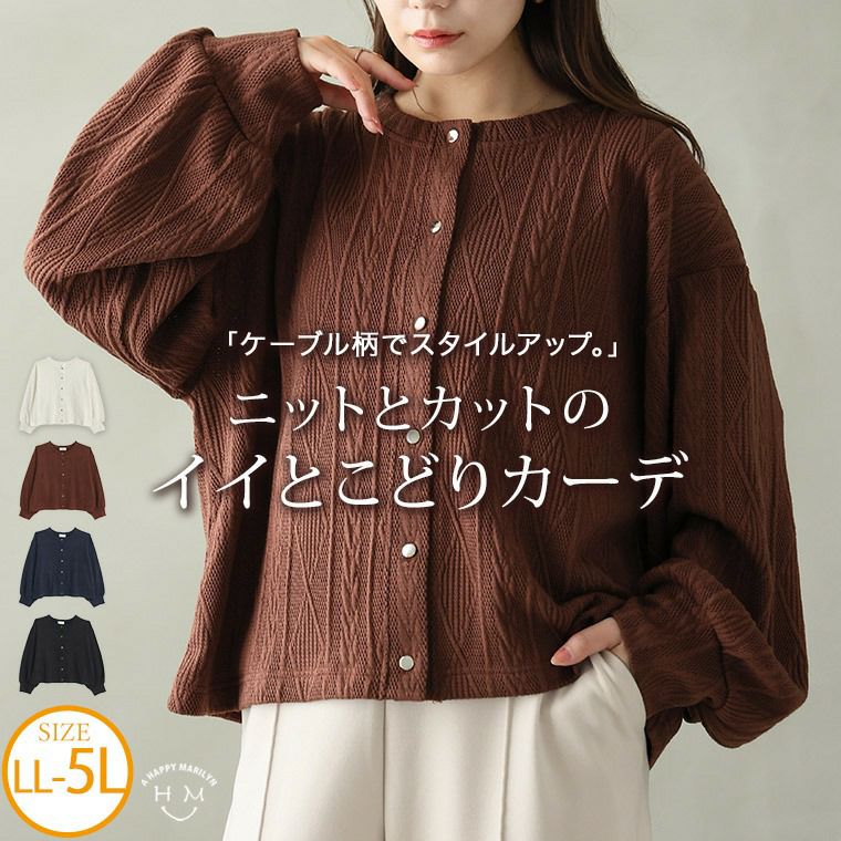 ■ニットとカットのいいトコどり! ケーブル ニットソー カーディガン 大きいサイズの通販ならハッピーマリリン(5900円以上購入で送料無料)
