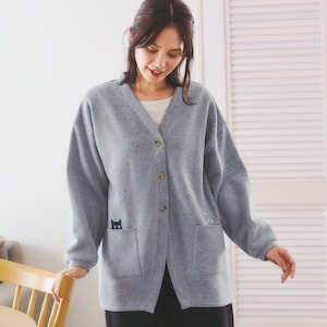 ■【ラ・フィット/la*fite】ネコ刺繍裏起毛カットソーカーディガン