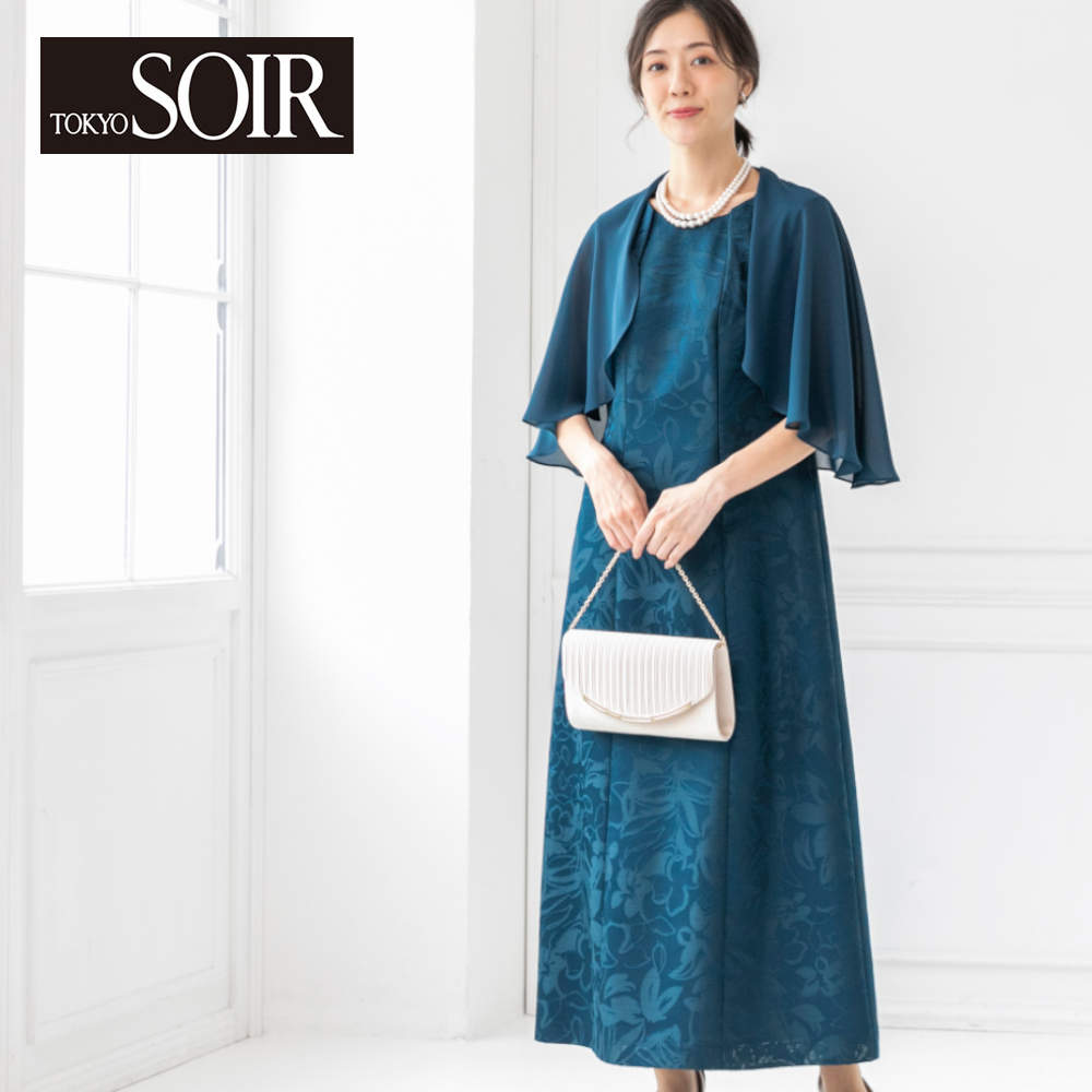 ■【東京ソワール/TOKYO SOIR】ケープ付き前開きロングドレス
