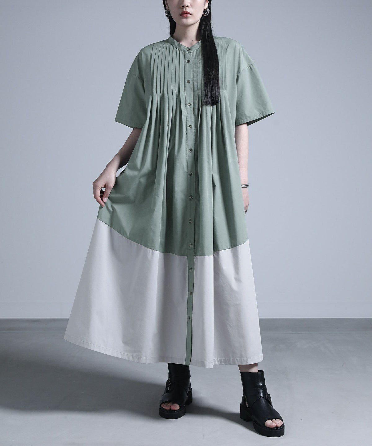 2026 Spring & Summer item 風合いのある表情が魅力!ピグメント加工が映えるティアードワンピース ピグメント加工ならではの、こなれた色合いとヴィンテージライクな風合いが特徴3段のティアード切り替えデザインで、動きのある女性らしいシルエットに程よくゆとりのあるサイズ感で、リラックスした着心地一枚で着映えしつつ、甘くなりすぎない大人カジュアルな印象デイリー使いはもちろん、季節をまたいで着回しやすい一着です