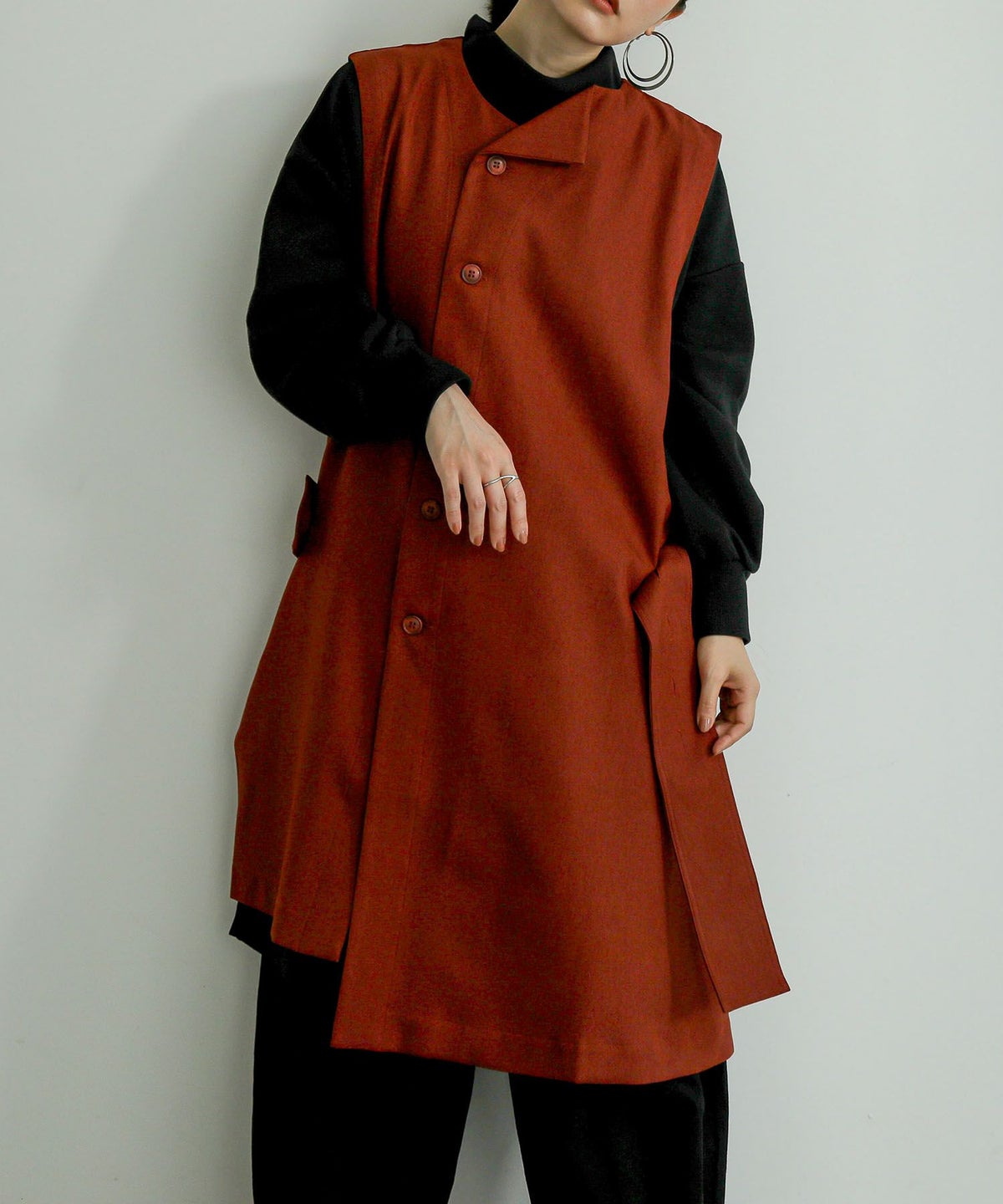 ■左ドレープノースリーブドレス フリーサイズ テラコッタ