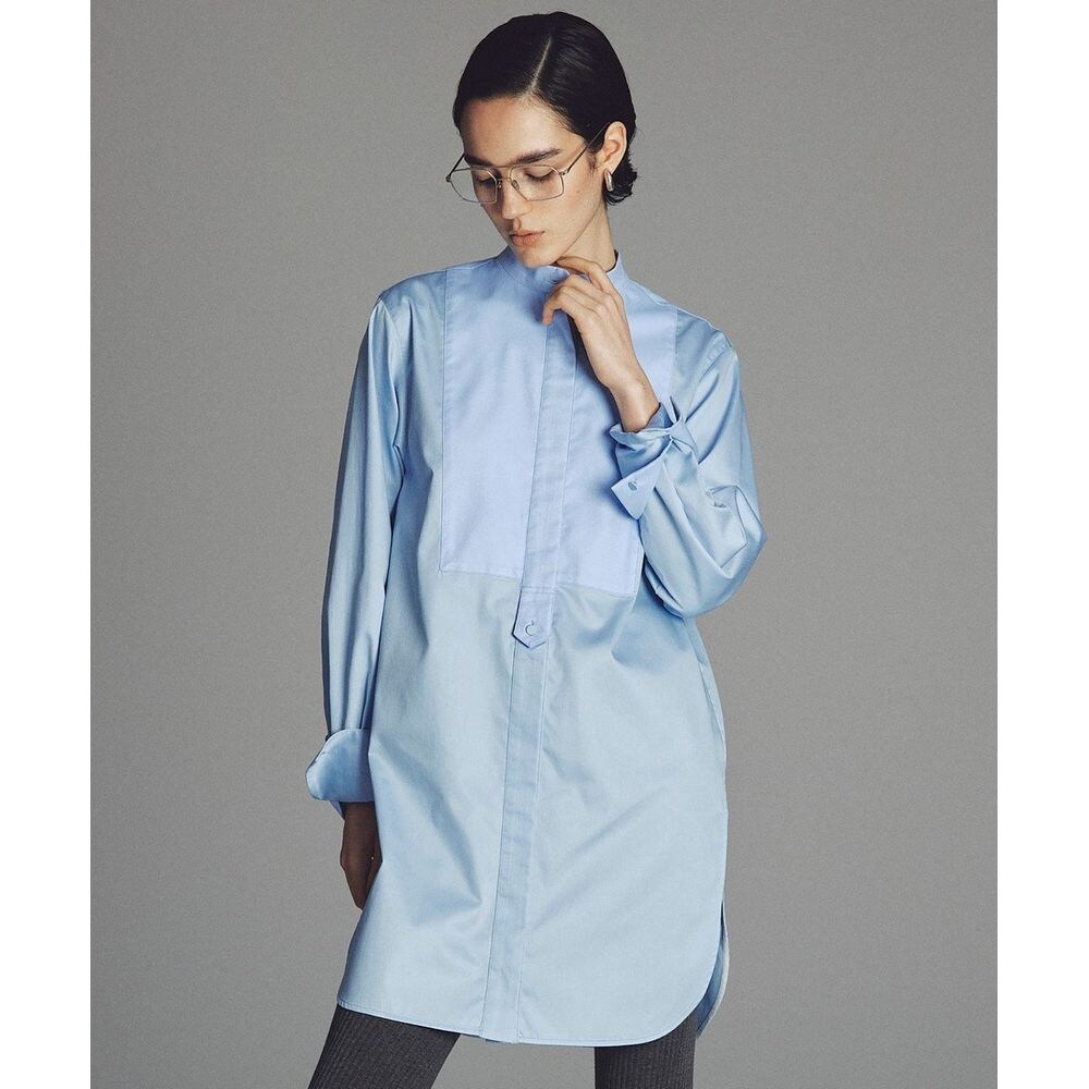 ■デザインキレイ目SH地とオックス調折り柄素材を使用したドレスシャツです。スターチドブザム(胸の切り替え)、袖カフス、前立て、ヨークに折り柄素材を使用し高級感のあるドレスシャツに仕立てました。長めの着丈がタテシルエットを強調し、スタイルアップが叶います。脇の深いスリットも特徴的にデザインした1枚です。■素材60/1番手の糸を使用した光沢感がポイントの綿サテンです。綿100%でありながら風合いは柔らかくシワになりにくいイージーケア素材。糸の打ち込み本数も多くきめ細やかな表面の為、高級感があります。異素材使用の折り柄はジャガード織りによりオックスフォードの様な細かい格子柄がポイント。こちらも綿100%ですが液アン加工(液体アンモニア加工...繊維の表面が滑らかになり、防縮性、防シワ性、強度、光沢が向上し、よりソフトで風合いの良い生地に仕上げる加工)により風合いと表面感に高級感を出しています。uncrave(アンクレイヴ)「むやみに欲しがらない」大人がこれさえあればいいと思える、「本物志向のテーラリングと素材感にこだわった、新しいバランスのベーシック」#オンワード樫山#オンワード#ONWARD#アンクレイヴ#uncrave
