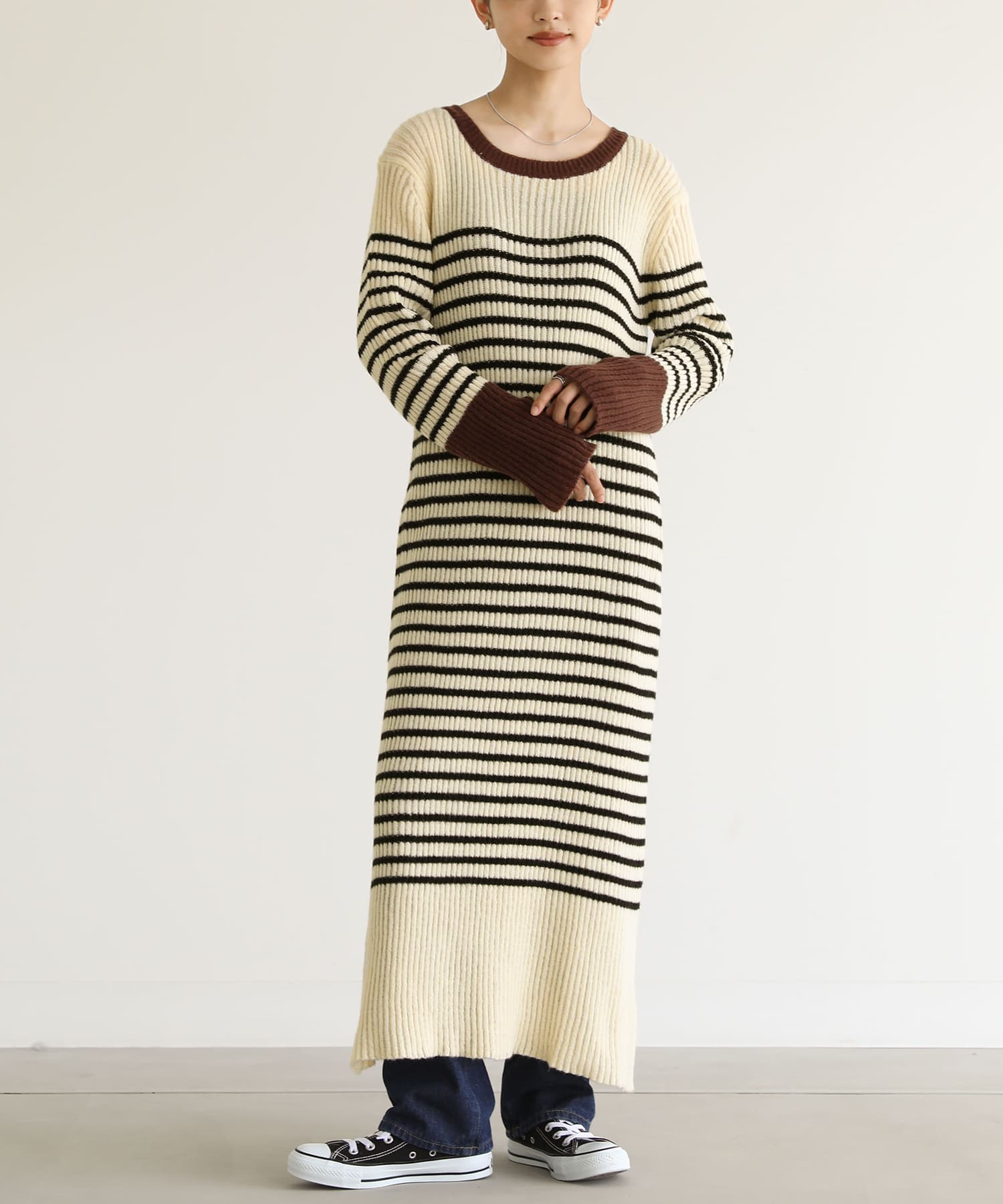 ■配色ボーダーニットワンピース【メール便不可】【40】 1 アイボリー