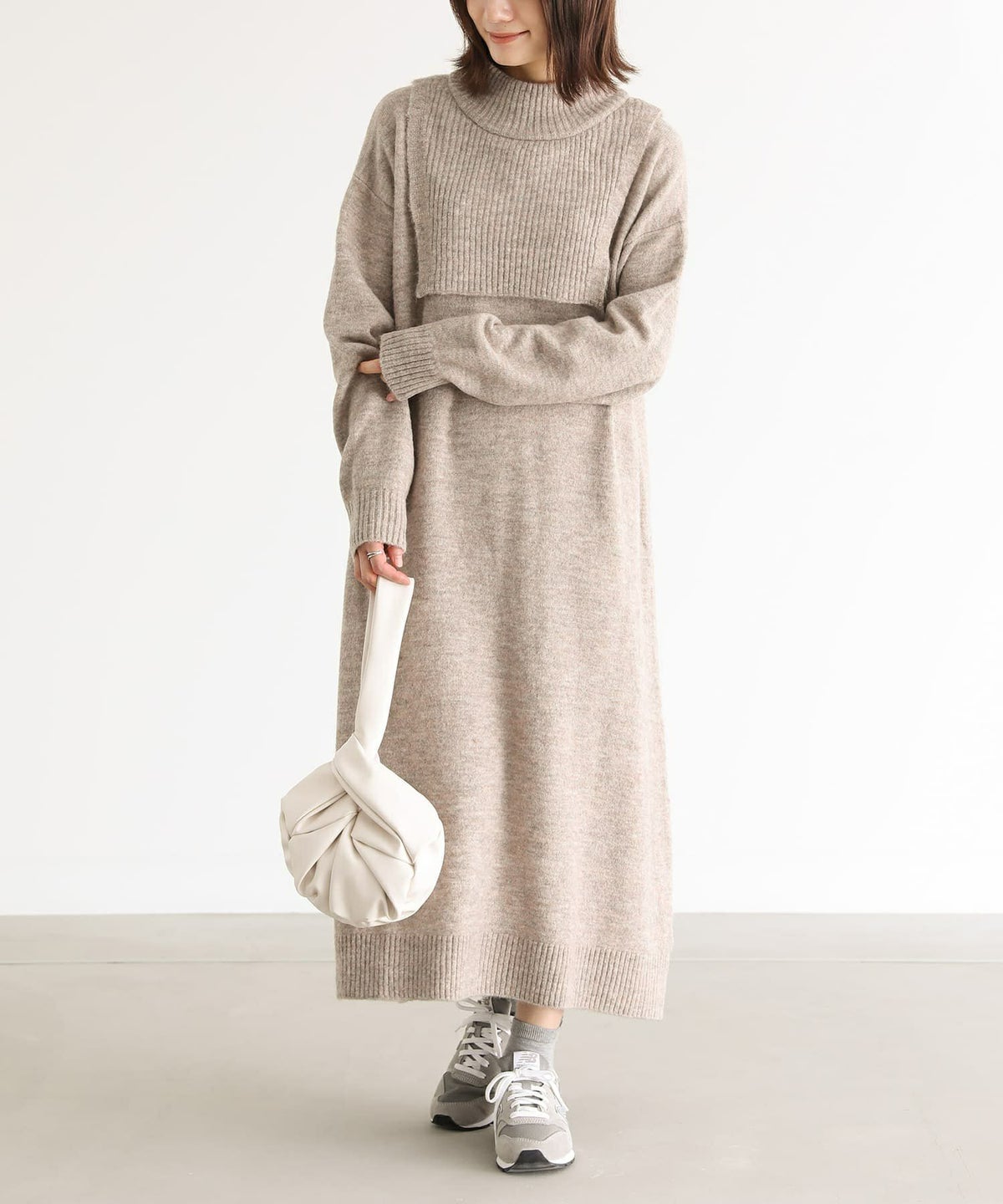 ■レイヤード風ニットワンピース 1 ベージュ