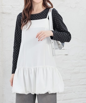 普段のおしゃれはこれにお任せ! 楽なのに心ときめくカットソーチュニックワンピ柔らかなカットソー素材で着心地ラクちん。ドット柄やチュールを効かせたフェミニンな1着。■ 品質/(上身頃)ポリエステル98%・ポリウレタン2% (下身頃)水玉柄:ポリエステル100% 無地:レーヨン47%・再生繊維(セルロース)43%・ナイロン10% チュール・テープ部分:ポリエステル100% * 商品によって柄の出方が異なる場合があります。 * 繊細な素材を使用しておりますので、バッグやアクセサリー等をお使いの際は引っ掛かりにご注意ください。