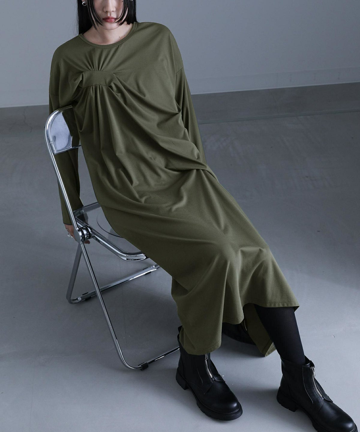 ■アシメドレープカットソーワンピース 1 カーキ
