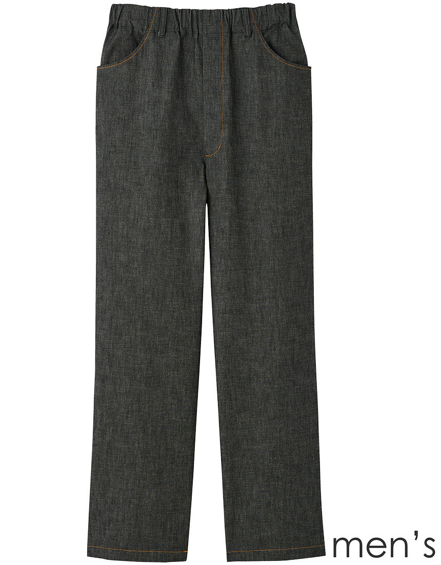 軽やかなダンガリー素材。ジーンズ風にカラーステッチを効かせて、かっこよく。前あき(ファスナー付き) :ズボンの前あき部分を広くとった親切設計。※ウエストゴム替え口あり、両前・右後ろポケット付き※ウエストやわらかゴム設計【サイズ詳細】※Sは身長155cm〜165cmに対応しています。M、コンフォートLは身長165cm〜175cmに対応しています。S:ボトム脇丈98.0cm 裾まわり42.0cm ウエスト65.0cm 股下(レングス)68.0cm ヒップ97.0cm M:ボトム脇丈103.0cm 裾まわり44.0cm ウエスト68.0cm 股下(レングス)72.0cm ヒップ103.0cmコンフォートL:ボトム脇丈104.0cm 裾まわり46.0cm ウエスト71.0cm 股下(レングス)72.0cm ヒップ109.0cm※出来上がり寸法を表示しております※サイズ詳細の寸法には多少の差異がございます出来上がり寸法の測り方についてはこちら