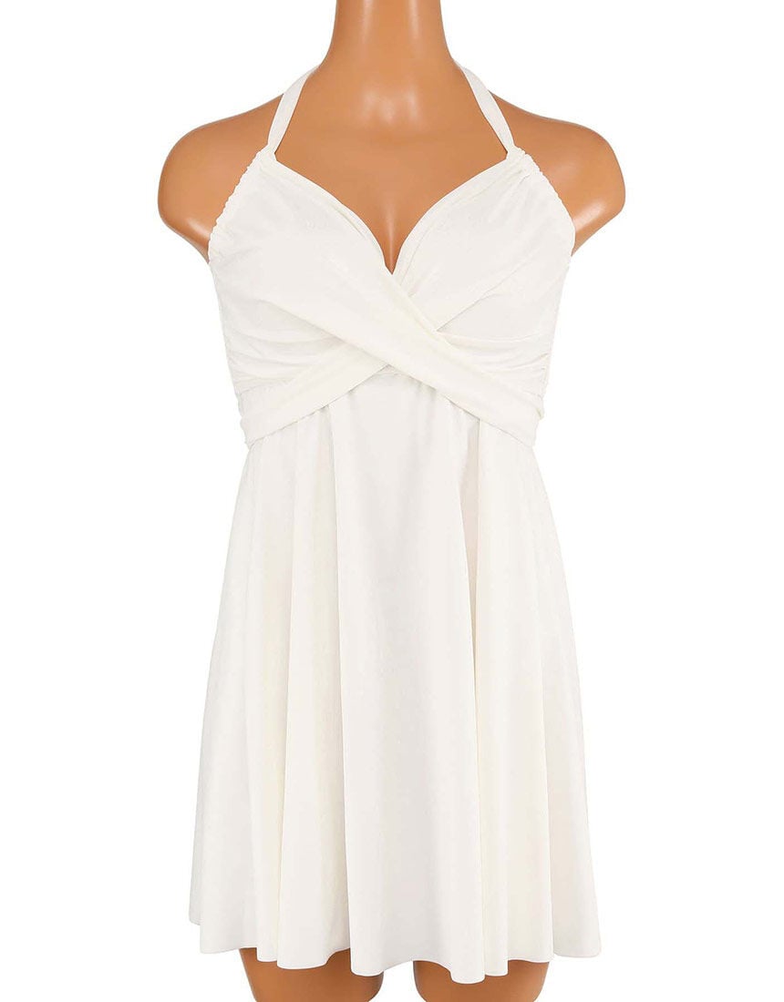 クロスワイヤーAライン水着クールで女性らしい雰囲気のAラインワンピースセット。ブラ部分は、ワコール定番商品のカップを使用したワイヤーブラを内蔵。安定感と、ホールド感のある脇高デザインです。ブラのサイドギャザーで、バストのカバーを調整可能。様々な体型にフィットします。セットのショーツも、安定感のある深さです。Aラインのシルエットが程良く体型カバー。お洋服見えする可愛いデザインで安心して着用できます。