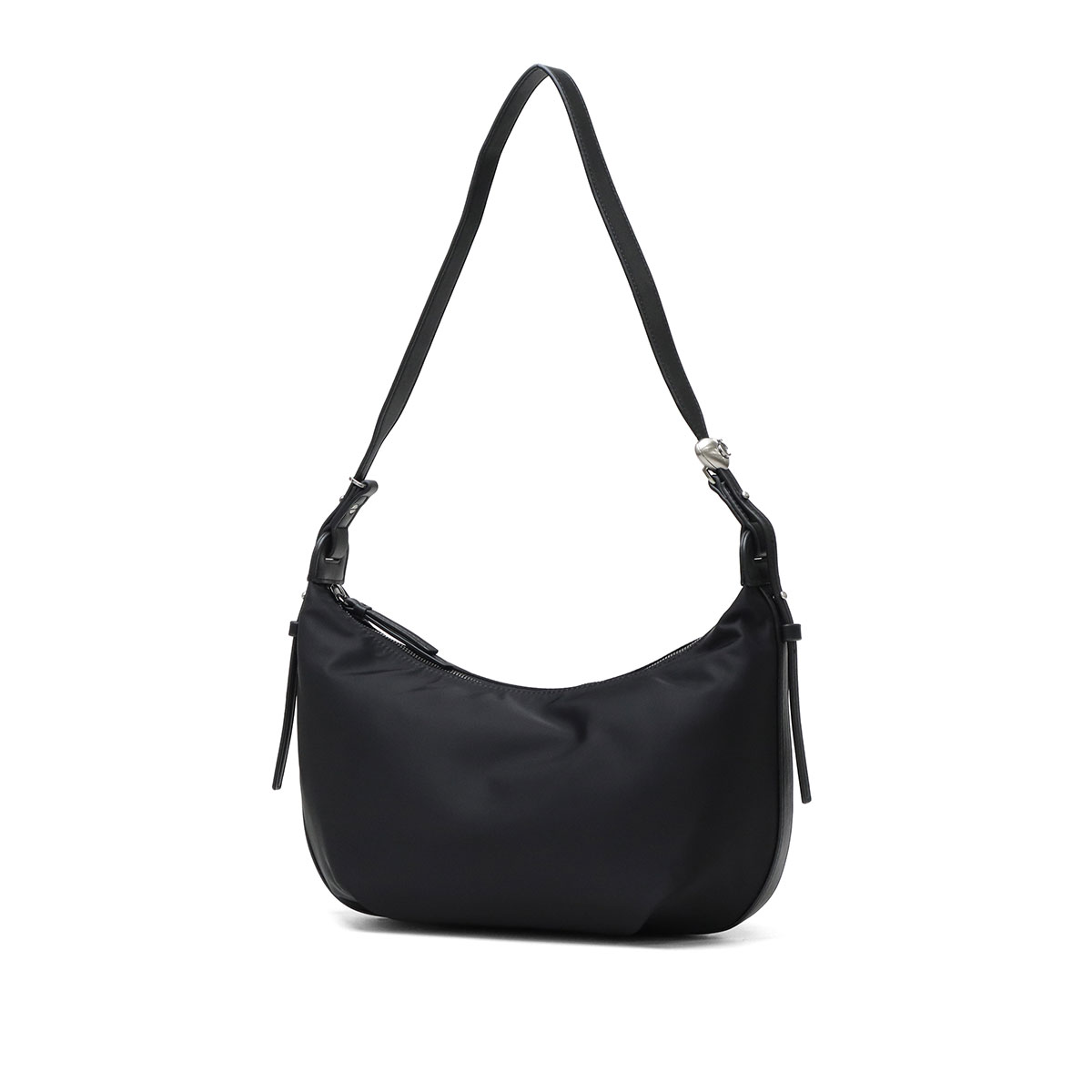 ハートのストッパー飾りがポイントの、ナイロン製ホーボーバッグ。